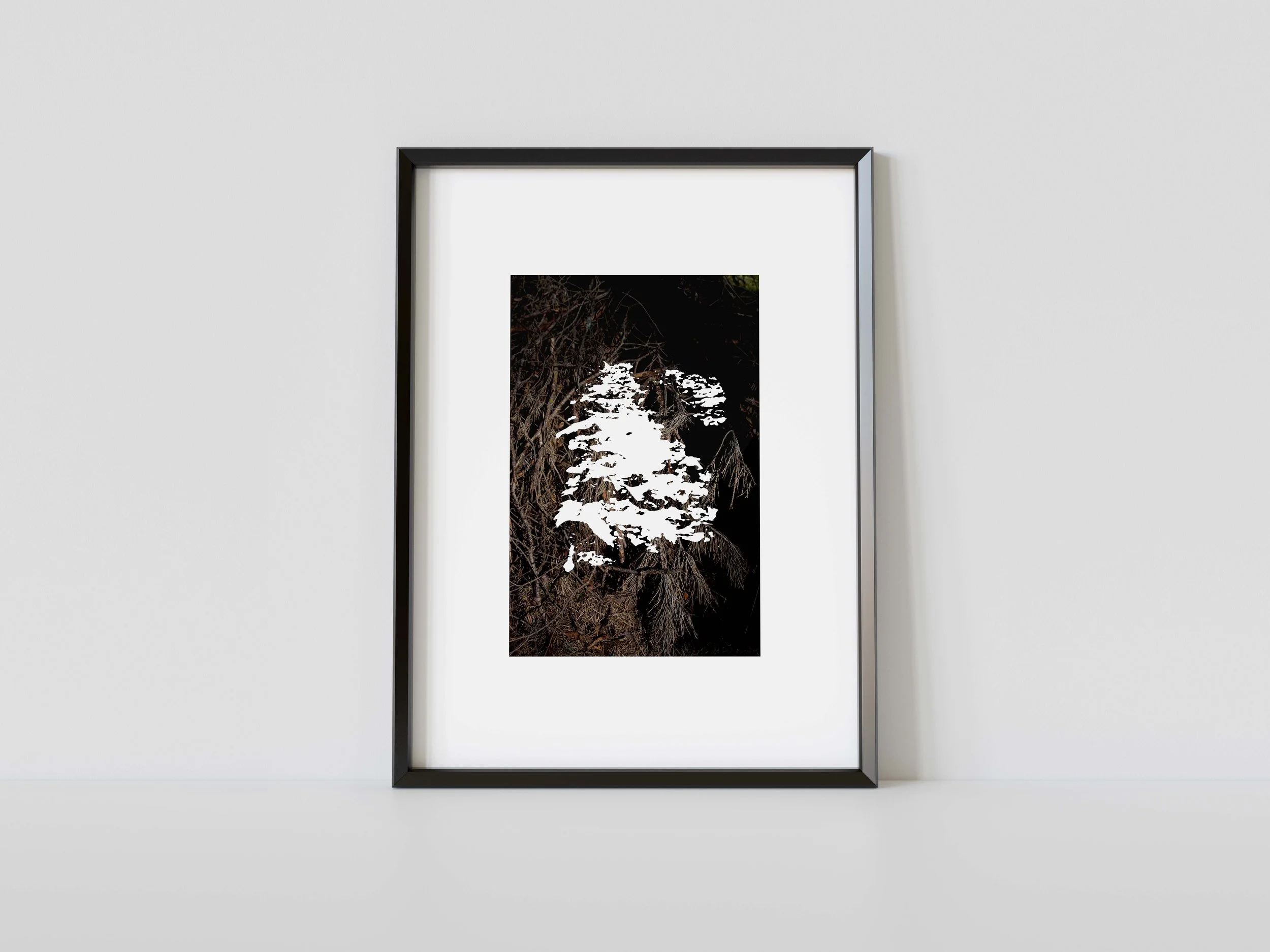 “This is a work about gaps and absences. The obliteration of a group and the disappearance of thousands of bodies is obvious but the story we were passed down about it is also riddled with gaps. The perpetrators tried hard to cover their traces, the information about the events is insufficient, most of the bodies vanished. What’s more, the telling of history itself implies gaps, as taking a certain position hides other possible stories. The overwhelming white of the pictures conveys this feeling of lacking, of all of the absences, while the two central images melt the past and the present together. Dark leaves from the Piasnica forest merge with the shape of the 1955 memorial, creating a new object. Bodies of victims from an archival photograph become abstract, like a trace of the past that has lost all brutality."